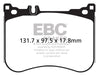 There are TWO reasons our customers love Redstuff, First because they are the lowest dust pad we have encountered by reducing dust by 60-90-percent. Plus the minimal dust you see is very easily removed with a simple sponge wash as it contains no steel fibre particles as in ALL OTHER pads. Second they brake like an alligator right from cold (as good as Original pads or better) and just get better as they heat up.This material is a Synthetic Fiber based brake compound enhanced with ceramic particles. If you have previously tried EBC redstuff (pre-ceramic compound) this material is light years ahead. It lasts longer; it brakes better and is quieter. Being a hard wearing pad, bed-in times can be as long as 1000 miles and drivers must be patient until the pad takes up the shape of their disc (brake rotor). This is a truly impressive fast road pad for repeated heavy braking.It emits far less dust than semi-metallic pads and has been proven to stop a passenger car/sedan/sport compact/hot hatch 13 metres quicker than OEM pads from 100mph/160kph. Features EBC Brake-In surface coating which conditions rotor surface and accelerates pad bed-in. Nominal friction coefficient 0.5 with approx. 50-percent dust reduction.Most EBC Red Ceramic pads are approved to ECE R90 brake safety regulation.