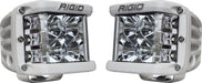 One of RIGID?s most versatile, compact lighting solutions just got better with the RIGID D-SS PRO, Dually-Side Shooter Professional Race Output LED pod. Perfect for any application that requires a wide spread beam, including A-Pillars, Fog Lights, and motorcycle applications. The D-SS PRO incorporates powerful optics and recently improved LED technology for greater output with the added benefit of additional LEDs aimed to the side for a much broader beam. The D-SS PRO packs a powerful punch with up to 102% more raw lumens depending on the optics chosen The D-SS PRO fixtures boast up to 120-degrees of horizontal lighting coverage when used in pairs or when used in the single light applications. The main forward-facing LEDs are available with RIGID?s advanced Spot, Flood, or Driving optics, so there?s a D-SS PRO lighting solution for nearly any application. The D-SS PRO LED lights are available in pairs with three side-shooting LEDs on one side of each fixture, or in single applications with a pair of side-shooting LEDs on both sides of the fixture. Only RIGID provides a broad, powerful lighting solution in such a compact package.