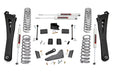Increased ground clearance Track bar bracket keeps the front axle properly centered. Fits both rear coil spring and rear air ride suspension models! Radius Arms offer a more factory-like angle and feature a durable, durable rubber Bushing for maximum vibration absorption. Rear ride height arm brackets let you adjust the rear ride height, up to 1-inch higher than the front - Air Ride models ONLY Includes application valved N3 series shock absorbers which offer the best in balanced performance for on and off-road use. Note: Requires 18" wheels or larger. Requires at least 3/8†of clearance from face of the stock caliper to the rear surface of the wheel. Please ensure this distance is present. If not component damage could occur. ONLY fits models with manual rear e-brake. Compliment your RAM 2500's aggressive, good looks with Rough Country's new 5-inch Lift Kit with lifted coil springs. New model RAM Trucks come with a wealth of impressive features right from the factory. Rough Country's new 5-inch kit was engineered to retain these impressive factory specs while bumping up performance and durability where it's needed most. The result is a lifted beast with a mean profile and lush ride-quality that'll make other RAM owners wonder where you got yours from!Rough Country's 5-inch Lift Kit is designed for Dodge RAM's equipped with either factory rear coils or factory rear air ride suspension. On Air Ride models, this kit uses a rear air bag spacer that works with the factory air bag to provide rear lift. This kit also features a Rear Sensor Arm Relocation Bracket that can modify how the sensor link speaks to the computer to determine what the ride height is. This allows you to adjust the amount of rear height up to 1-inch higher than the front by way of multiple mounting points spaced by 1/4-inch. Pick the mounting point you want for the rear ride height you prefer.When changing a vehicle's suspension, the key to preserving ride quality is in keeping the geometry of all suspension components as close to their factory angles as possible. Rough Country's new 5-inch Suspension kit features a set of ultra-durable Radius Arms, precision fit to bolt right into the factory mounts for an easier install and a more factory-like angle. These beefy, upgraded Radius Arms also feature a durable, durable rubber bushings for maximum vibration absorption. This kit also includes a set of front, lifted coil springs for unparalleled ride quality from your lifted Dodge Ram.