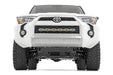 // Bracket Details \ Easy installation. Looks like factory equipment. Durable black carbon powdercoating. Includes Lifetime Replacement Guarantee // LED Details \ Each light contains 6, 3 watt High Intensity CREE LEDs 14400 lumens (total) 180 watts (total) 8 degree spot / 90 degree flood beam IP67 Waterproof rating Black panel design Durable die cast aluminum housing Moisture Breather technology reduces moisture build-up behind the lens Includes premium, flat-wound wiring harness with on/off switch Features a 3-year Warranty Note: 35" tires will clear but rubbing may occur with extreme articulation If planning on running 35" tires on factory wheels, double check clearance between the front tire, lower control arm and sway-bar links. COMMAND THE DARK: Add LED illumination to the front of your Toyota 4-Runner with Rough Country's 30in Hidden Grille LED. This sleek, discreet lighting system blends in seamlessly with the front-end design, hidden behind the mesh grille on the factory front grille.<br><br>This powerful LED application provides 180 watts of forward-facing illumination in a convenient 8 degree spot / 90 degree flood combo pattern for maximum viewability. Each Rough Country LED light features an IP67 waterproof rated durable diecast aluminum housing for a long lifespan or great performance. Each light features a premium wiring harness with in-line fuse for easy operation.<br><br>Choose from Rough Country's Black Series and DRL Series Light Bars.