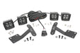 100% bolt-on installation Does NOT interfere with washer nozzle or spray pattern 7200 lumens 80 watts Each light contains 6, 3 watt high intensity Cree LEDs IP67 Waterproof rating Durable die cast aluminum housing Moisture Breather technology reduces moisture build-up behind the lends Includes premium, flat-wound wiring harness with on/off switch 3 year warranty Note: Eco-Diesel models will have to relocate the Eco-Diesel badge for installation. Does NOT work with Rough Country Bed Access Nerf Steps. Whether it's off-road riding at night or navigating the trails after hours, Rough Country's Quad Cube LED Ditch Mounts gives you the strong side illumination you need. Never miss another turn, and safely maneuver through any off-road situation in the dark without obstructing visibility from inside the cab. This easy to install mounting system is low profile and features 100% bolt-on installation procedure, with no need for cutting or drilling needed. The LED Cubes tuck nicely along the base of the windshield and pack an impressive 7,200 lumens and 80�watts of lighting power. Each Rough Country LED light cube is IP67 Waterproof and includes a premium, braided wiring harness with in-line fuse and on/off switch. This kit Includes Rough Country's 3-year LED warranty.