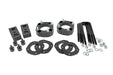 Easy bolt-on installation Increased ground clearance Maintains factory ride quality Levels the front with the rear of the vehicle No strut disassembly or strut compressor required for installation. Differential spacers maintain proper front CV axle angle. Adjustable - Shim plates allow you to fine tune the front amount of lift. Truck can easily be returned to stock Rough Country's 2.5" - 3" Leveling Suspension Kit for Toyota Tundra is the most innovative way for you to level the front of your vehicle with the rear, allowing you to dial in the angle you desire. Featuring a set of front, upper strut extensions, this kit can accommodate up to a 33" tire. This kit now includes two sets of 0.25" spacer shims, which can be used in addition to the strut spacers to fine-tune your level angle. Each shim provides roughly 3/8" of lift. Use both for a full 3" level, or fewer to leave a little rake in the front end angle - this is specifically great for individuals who prefer a slight nose down look for an aggressive head-on view, or routinely pull trailers and haul items that would potentially draw the nose up from a full level stance. Designed by Rough Country's in-house Research and Development team, these components are engineered for a precise fit and incorporate superbly with factory equipment. 100 % bolt-on installation makes setup a breeze, and all components are protected by Rough Country's Lifetime Replacement Warranty.