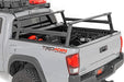 Powder coated Aluminum for lightweight strength and durability. Molded end caps and T-slot covers for a clean look. Endless mounting options and adjustability. Retain rear visibility. Weight Rating: 750lbs Static load | 400lbs Dynamic load. Note: Sold in pairs. #html-body [data-pb-style=P1B72UC]{justify-content:flex-start;display:flex;flex-direction:column;background-position:left top;background-size:cover;background-repeat:no-repeat;background-attachment:scroll}Upgrade your Tacoma Bed. The Tacoma Bed Rack from Rough Country gives you the flexibility to carry bulky cargo and outdoor equipment in your truck bed. It's just right for loading ladders, roof racks, bikes, and more with ease. And whether you're headed out for a camping trip or working under the sun on a job site, this bed rack keeps all your equipment close at hand. Durable Style: This innovative bed rack system is built from durable powder-coated aluminum for lightweight strength and durability. The modular design allows you to add as many crossbars as needed, and the molded end caps and T-slot covers give your truck that clean look you're looking for. Rugged enough to handle any payload you can throw at it; our bed rack is sure to turn headsâ€â€and help you carry your gear wherever you need it. Installation and Warranty: This easy-to-install rack offers endless mounting options and adjustability, so you can customize it to suit your specific needs. It also retains rear visibility, making it the perfect choice for those who want to maintain a clear view while driving. Plus, it comes with Rough Country's Limited Lifetime Warranty, so you can rest assured that it's built to last. So, load up and hit the road with confidence, knowing that Rough Country has you covered.