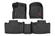 Quick and easy installation Meticulously engineered to fit each vehicle exactly right All weather protection against Snow, Mud, Sand, Salt Water and More! Resist extreme temperatures Protect against soda, coffee spills or accidents Spill Saver Lip (Prevents spills from reaching the carpet.) Textured surface keeps feet from slipping Eco-friendly, low density polyethylene provides full flexibility to ensure a lasting shape Easy to Clean and Maintain (Detachable from Vehicle) Limited Lifetime Warranty Note: Does NOT completely cover frame on HD models Does NOT fit GMC models Does NOT fit dually models Aftermarket fender flares may need to be temporarily removed for installation. California Residents: Prop65 Warning Keep your carpet in pristine condition with Rough Country's Floor Armor: Heavy Duty Floor Mats and Rear Cargo Liners. These eco-friendly, semi-flexible floor mats are made of an ultra-durable Polyethylene that offers a strong, rigid shape that's incredibly easy to clean. Where simple rubber floor mats fail, Rough Country's line of Floor Armor is guaranteed for life and will never crack, split, or break-down over time. The high-quality design extends the lifespan of your carpets and the raised-lip design ensures your interior will always be protected from mud, moisture, and more. These contoured floor mats are laser-measured for each make and model; designed to be a precise fit that grips the carpet and stays put. An aggressive looking textured surface gives your muddy shoes plenty of traction and looks great inside the vehicle. No matter what you track in, Rough Country Floor Armor is incredibly easy to clean. Just pop them out of the floorboards and rinse away the dirt! Includes Rough Country's Lifetime Replacement Warranty.