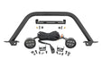 1 7/8" x .095" wall Tubing. Mounting flanges are made from 7 gauge material. Mounts to modular bumper with factory hardware. Slotted light bracket allows the use of multiple LED options. Works with the RC high mount winch kit. Can be installed as a stand-alone unit. Mounting bar features a 5-year limited warranty. LED Lights feature a 3-year limited warranty. Optional 20” Light Bar 7200 lumens 100 watts Durable die-cast aluminum housing Contains 20, 5 watt Cree LEDs 3 year warranty Optional 4” Round Lights 4320 lumens 54 watts 30 degree spot beam Contains 9, 3 watt Cree LEDs 3 year warranty Optional Wide Angle Osram LED 13,500 lumens 150 watts 140 degree wide-angle beam Contains 30, 5-watt OSRAM LEDs 3 year warranty Note: Requires cutting and drilling. Does not fit Hybrid eAssist models Does NOT fit models with stock Cast Aluminum or Stamped Steel control arms Does NOT fit GMC Denali models with Magnetic Ride Control. If wider than 295/60R20 tires are used, offset wheels will be required and trimming may be required. Please view installation instructions for complete information on proper tire/wheel combinations. If truck is equipped with a mass damper on the front differential, the damper must be removed. <p><strong>Rugged Style and Protection.</strong> Create a custom front-end look with the Rough Country Bronco Safari Bar. Rough Country's Bronco Safari Bar is just what you need. Offering protection from both on and off-road hazards, it's perfect for tackling any adventure. Plus, with multiple LED mounting solutions, you can be sure you'll have plenty of light - no matter where you go. And if you're looking to add a winch, the Safari Bar works perfectly with Rough Country's High Mount Winch Kit. This is the perfect accessory for off-roading enthusiasts who strive to go farther and higher every time they hit the trails.</p> <p><strong>Built to Withstand.</strong> The Rough Country Bronco Safari Bar is the perfect accessory if you're looking to get your Bronco ready for an adventure. This tough bar is made from high-quality steel with 1 7/8" x .095" wall tubing to ensure maximum strength. The mounting flanges are also made from 7-gauge material, so you know it's built to last. In addition, it comes in a corrosion-resistant black powder coat finish to withstand even the most challenging terrain. Rough Country's Bronco Safari Bar is a perfect choice if you're tackling rugged trails or just want to add a little extra style to your ride.</p> <p><strong>Installation and Warranty.</strong> This easy-to-install bar is perfect for anyone looking to take their Bronco to the next level. The Safari Bar mounts directly to your modular bumper using factory hardware and can be installed as a stand-alone unit. You also get peace of mind knowing that your purchase comes with a limited lifetime replacement warranty for manufacturer defects. With Rough Country's industry-leading warranty, you can be sure that your Rough Country lift kit is protected from structural and workmanship damage after purchase.</p>