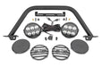 1 7/8" x .095" wall Tubing. Mounting flanges are made from 7 gauge material. Mounts to modular bumper with factory hardware. Slotted light bracket allows the use of multiple LED options. Works with the RC high mount winch kit. Can be installed as a stand-alone unit. Mounting bar features a 5-year limited warranty. LED Lights feature a 3-year limited warranty. Optional 20†Light Bar 7200 lumens 100 watts Durable die-cast aluminum housing Contains 20, 5 watt Cree LEDs 3 year warranty Optional 4†Round Lights 4320 lumens 54 watts 30 degree spot beam Contains 9, 3 watt Cree LEDs 3 year warranty Optional Wide Angle Osram LED 13,500 lumens 150 watts 140 degree wide-angle beam Contains 30, 5-watt OSRAM LEDs 3 year warranty Note: Requires minor cutting and drilling. Does NOT fit dually models. Does NOT fit models with Magnetic Ride Control. Gas models may require modification to the exhaust for driveshaft clearance Factory rear overload springs will NEED to be removed on equipped models. Does NOT work with factory wheels. Models equipped with factory 17-inch wheels must use 17-inch or larger aftermarket wheels due to larger calipers/rotor. <p><strong>Rugged Style and Protection.</strong> Create a custom front-end look with the Rough Country Bronco Safari Bar. Rough Country's Bronco Safari Bar is just what you need. Offering protection from both on and off-road hazards, it's perfect for tackling any adventure. Plus, with multiple LED mounting solutions, you can be sure you'll have plenty of light - no matter where you go. And if you're looking to add a winch, the Safari Bar works perfectly with Rough Country's High Mount Winch Kit. This is the perfect accessory for off-roading enthusiasts who strive to go farther and higher every time they hit the trails.</p> <p><strong>Built to Withstand.</strong> The Rough Country Bronco Safari Bar is the perfect accessory if you're looking to get your Bronco ready for an adventure. This tough bar is made from high-quality steel with 1 7/8" x .095" wall tubing to ensure maximum strength. The mounting flanges are also made from 7-gauge material, so you know it's built to last. In addition, it comes in a corrosion-resistant black powder coat finish to withstand even the most challenging terrain. Rough Country's Bronco Safari Bar is a perfect choice if you're tackling rugged trails or just want to add a little extra style to your ride.</p> <p><strong>Installation and Warranty.</strong> This easy-to-install bar is perfect for anyone looking to take their Bronco to the next level. The Safari Bar mounts directly to your modular bumper using factory hardware and can be installed as a stand-alone unit. You also get peace of mind knowing that your purchase comes with a limited lifetime replacement warranty for manufacturer defects. With Rough Country's industry-leading warranty, you can be sure that your Rough Country lift kit is protected from structural and workmanship damage after purchase.</p>