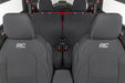 Fits very snug! Made to factory specifications. 4-Layer construction w/ foam padding and protective polyester shell. Neoprene layer offers great breathability and water resistance. Includes full covers for front seats - plus headrest covers where applicable. Front covers help protect your most-used seats from wear. Rear covers help protect your back seats from children and animal stains. Two-year warranty. Note: Requires factory original hardware. Does NOT fit full steel door models. Does NOT fit Unlimited models. California Residents: Prop65 Warning <p><strong>Comfortable and Durable Protection.</strong> Protect your seats from water, mud, and anything you can throw at them with Rough Country's front and rear Neoprene Seat Covers. These easy-to-install covers fit snugly over your truck's seats to protect your interior from the elements while blending in perfectly. These comfortable seat covers feature a 4-layer construction with thick foam padding for a comfortable feel and durable quality. The outer Neoprene protective layer wards off water and mildew while being soft to the touch and offering great breathability. Each cover is designed to be an exact fit on your vehicle, with accessibility for airbags, seat adjustment, and more! Pick up a set of front seat covers to save your most-used seats from additional wear or a rear set to protect your back seat from stains caused by kids or animals. Or choose front and rear for full seat protection!</p> <p><strong>Installation and Warranty.</strong> Installation is fast and easy, just slip each cover firmly over the seat and fasten with the built-in straps and you're ready to roll! Rough Country's Neoprene Seat Covers are backed with a two-year warranty towards manufacturer defects. As such, the product is protected from structural and workmanship damage after the date of purchase. With our industry-leading warranty give yourself peace of mind when using Rough Country's Suspension products!</p>