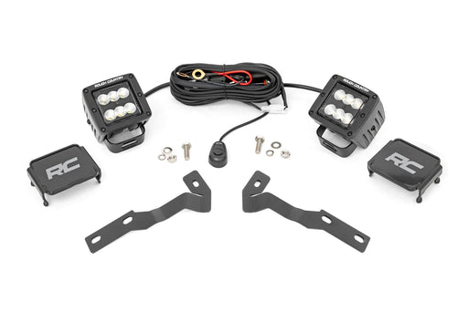 Rough Country LED Light Kit Ditch Mount 2" Black Pair Flood Fits toyotaTacoma (16-23)