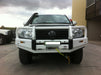 Manufactured from high quality structural steel, Dobinsons bull bars are CNC cut, bent and welded for accurate fitment, optimum strength and durability. Features vary by bumper model, but may include: Airbag and winch compatible, Driving light mounts, turn signal (Deluxe and Stainless bumpers only) and parking lights, Heavy duty black powder-coat finish, Dual re-enforced hi-lift jacking points, Dual aerial mounts, Polyurethane bumper overiders (deluxe and Stainless bumpers only), Re-enforced bull-bar wing tips, Separate winch cradle to chassis mounting system allows excess weight and load to be supported directly by the chassis, 3mm Thick Main Body, 4mm + 5mm Thick Bracket, 1.6mm Bash Plates (some models may not come with these), 51mm Upper loops on Classic Black and Classic Black Deluxe (60mm Land Cruiser 200 Series), 76mm center loop and 51mm side loops on Stainless Loop Deluxe models. All bumpers are supplied with a black finish. Stainless Loop Deluxe Bull Bars are supplied with a black finish and stainless steel loops. Some photos show painted bumpers on show vehicles for photography purposes. Color matching can be performed by your local automotive spray painter. Due to the additional weight when fitting a Bull Bar and/or Winch, the vehicle’s ride height will be lowered. We suggest replacing the springs with a matched pair of springs to suit the requirement. Most bull bars are also equipped with center and side protection plates for the underside of the bull bar. A crucial feature to help protect vital vehicle components when off-road driving. Separate winch cradle to chassis mounting system allows the additional weight of the winch and winching load to be supported directly by the chassis. NOTE: Contact us for accurate information on bumper specifics before ordering if you have questions. Returned shipments will incur additional shipping and handling charges.
