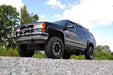 Get a huge boost for your '88 - '98 Chevy / GMC 1500, Tahoe, and Suburban with Rough Country's all-inclusive 6-inch Suspension Lift. With a set of beefy front and rear crossmembers and differential drop brackets, this kit can take what you dish out and keep on kicking. A set of drop-torsion bar brackets and a durable front skid plate both feature laser-cut RCX logos that peak out from under the frame, giving your vehicle an unmistakable look. This kit ships with a massive steering link and heim joint assist link. Rear lift blocks and add-a-leafs give plenty of clearance - enough to accommodate up to 35-inch tires. Our new and improved design allows your vehicle to retain it's stock track width, and installation is now even easier.