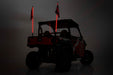 Turn heads along the trail with Rough Country's two-piece LED Whip Light kit. These 4 foot tall, flexible LED whip lights feature a mind-blowing array of 300 unique, colorful patterns such as strobe, fade, rainbow, swirl, chase, and countless more. With 300 LEDs in a spiral formation, these LED whip lights are designed to produce a dazzling display of color combinations that make your vehicle stand out from the pack. Use the handy included remote to quickly change colors, patterns or dim the lights however you desire! Each unit is designed for maximum durability and display, with an IP67 waterproof construction that's built to ward off water, mud, and the elements for a long lifespan of cool colors. The innovative quick-release base allows you to effortlessly remove the whip lights from your UTV at any time while keeping the wiring intact. Each whip light also features a removable Rough Country flag mounted to a swivel bracket.