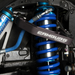 Using larger and stronger FK 7/8†chromoly heim joints allows for additional camber and caster adjustment if needed. Using a heim joint also eliminates flexing/deflection under hard use and braking with zero binding when in use. Using AN/Mil-spec hardware we have a single pinch bolt and secondary jam nut to insure the heim is secure with the rigors of off-road use. These heims are considerably stronger than the smaller & cheaper versions many competitors use.