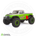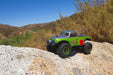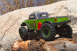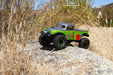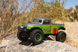 Rock Lizard tires mounted on black Rockster wheels with green-painted Beadlock to match the body trim.