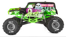 Licensed from Feld Motorsports, the genuine Grave Digger ‘50s-era panel van body is as ghoulishly real as it gets, from the trademark graveyard paint scheme and chrome Zoomie headers to the driver figure with a glow-in-the-dark helmet. BKT Monster Jam style tires with foam inserts add more scale realism along with impressive grip and handling on a wide range of terrain.