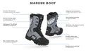 Whether you are attacking the trails, boondocking a hillside, or eating up the gnarliest climb, the Marker Boot is designed to dominate all terrain. When challenged with the toughest obstacles, the Marker Boot has the grip to move forward. With an innovative breathable and waterproof Hydroguard system, the Marker Boot provides great protection to keep your feet warm and dry. The only thing you will need to concentrate on now is giving the next obstacle in your path "the boot."