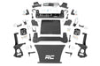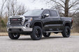 Lifts and levels the vehicle from front to rear High clearance crossmember design for optimal suspension geometry Includes cast knuckles for extreme durability Retains stock track width No strut disassembly required 100% precision laser cut materials using the latest computer aided design process. Fabricated blocks are stronger and offer a longer lifespan than cast blocks. Includes application valved N3 series shock absorbers which offer the best in balanced performance for on and off-road use. Note: California Residents: Prop65 Warning GMC's 2019 Sierra 1500 features an impressive all-new design that's built from the ground up, with aggressive angles and head-turning stylings that fit in beautifully when transformed with Rough Country's 6in Suspension Lift.This kit lifts and levels your vehicle for a commanding stance and enough clearance to run 35x12.50 tires on 10in wide wheels. Rough Country has engineered this kit to provide optimal suspension geometry while retaining the factory ride quality, giving you enhanced off-road capabilities without sacrificing the handling and smooth ride that makes this truck so impressive.Rough Country's 6in Suspension lift retains the stock track width, allowing for up to a 10in wide wheel with 4.5in backspacing. Each kit includes front and rear crossmembers and a skid plate for enhanced chassis strength as well as cast steel knuckles for incredible durability and performance. Includes Rough Country's Lifetime Replacement Guarantee!