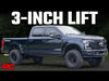 Easy bolt-on installation. Maintains factory ride quality. Increased ground clearance. Levels the front with the rear of the vehicle. Radius arm drop brackets allow for properly set caster. Proper caster is crucial to maintaining factory handling and driveability. Note: Requires cutting and drilling. Does not fit Hybrid eAssist models Does NOT fit models with stock Cast Steel control arms Does NOT fit GMC Denali models with Magnetic Ride Control. If wider than 33x12.50 tires are used, offset wheels will be required and trimming may be required. 18-inch or larger wheels are required. Please view installation instructions for complete information on proper tire/wheel combinations. If truck is equipped with a mass damper on the front differential, the damper must be removed. <p><strong>Superior Looks.</strong> Give your fourth-generation Ford Super Duty Tremor an impressive upgrade, front to back with Rough Country's 3" Suspension Lift Kit! This easy-to-install lift kit raises the front of your vehicle to be equal height with the rear for a leveled, better-than-stock look that gives an improved ride height and a more aggressive appearance.</p> <p><strong>Durable Components.</strong>This kit features a set of front, lifted coil springs spacers allowing you to gain additional ride height without sacrificing ride quality or performance. A set of radius arm drop brackets as well as a track bar drop bracket is provided to keep everything at optimum angles for a factory-like ride, even after lifting. A set of Rough Country's premium V2 monotube shocks are also included. The V2 Monotube Shock Absorber is more than an upgrade - it's a true performance shock. Each shock features a T6061 brushed aluminum body with black anodized accents giving it a striking visual appearance that also dissipates heat faster than other materials. The internal 46mm high-flow piston offers countless years of durability.</p> <p><strong>Installation.</strong> Requiring minor trimming to install, an estimated timeframe of 3-4 hours is recommended to complete this full installation. This full kit can be installed at home and can be completed efficiently and quickly!</p> <p><strong>Limited Lifetime Replacement Warranty.</strong> Rough Country's 3-inch Suspension Lift Kit is backed with a limited lifetime replacement warranty towards manufacturer defects. As such, the product is protected from structural and workmanship damage after the date of purchase. With our industry-leading warranty give yourself peace of mind when using Rough Country's Suspension products!</p>