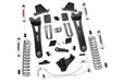 100% bolt-on installation Increased ground clearance Levels the front with the rear of the vehicle Includes heavy-duty radius arms equipped with durable durable rubber Bushings for maximum vibration absorption. New radius arms help maintain factory angles. Includes adjustable alignment cam at the axle to allow caster adjustment Includes application valved V2 series shock absorbers which offer the best in balanced performance for on and off-road use. Fabricated blocks are stronger and offer a longer lifespan than cast blocks. Specially designed anti-axle wrap rear blocks maintain stock ride quality while eliminating common lift block problem. Note: Designed for recovery purposes ONLY. Designed to accommodate shackles with 7/8in size threaded pins Only works with aftermarket bumpers that are designed to retain factory tow hooks This item can be purchased with or without the ability to work along with an aftermarket Bull Bar Compliment your 11-14 Ford F-250's aggressive, good looks with Rough Country's 6-inch Radius Arm Lift Kit. Rough Country's 6-inch Lift Kit was engineered to retain the F-250's impressive factory specs while bumping up performance and durability where it's needed most. The result is an aggressive, lifted beast with a mean profile and balanced on and off-road ride quality.When changing a vehicle's suspension, the key to preserving ride quality is in keeping the geometry of all suspension components as close to their factory angles as possible. Rough Country's new 6-inch Radius Arm Suspension Lift features a set of ultra-durable Radius Arms, precision fit to bolt right into the factory mounts for an easier install and a more factory-like angle. At 27lbs each, these beefy, upgraded Radius Arms dwarf stock equipment while and feature durable durable rubber bushings for maximum vibration absorption.This all-inclusive kit also features an adjustable alignment cam at the axle to allow caster adjustment as well as a track bar relocation bracket and a drop pitman arm. A full set of V2 Shocks provide a truly balanced ride quality for on and off-road use - perfect for daily drivers. This kit also ships with a set of durable, lifted coil springs and brake line relocation brackets.This innovative kit design features a 100% bolt-on installation process that is lightning fast compared to other kits this size. Save time and money with no need for cutting, drilling, or other complicated procedures. Rough Country's 6-inch Radius Arm Lift Kit is backed by our Lifetime Replacement Warranty.