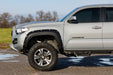 Tire Coverage: 1 in. Flare Height: 6 in. Simulated riveted look. Quick and easy install with no drilling. Added protection from rocks, mud and other road debris. UV protected to prevent fading. Built from a special Tri-Blend ABS material for maximum strength and durability. Easily paintable to color match your truck. Can be removed to bring truck back to stock. 3-year limited warranty. Note: Sold in pairs Add aggressive good looks quickly and easily with Rough Country's Fender Flares. Nothing compliments a new lift, wheels, and tires like a set of stylish, mean-looking fender flares. Rough Country's Fender Flares are designed with a simulated riveted look. These fender accessories bolt-on quickly and easily in a few secure mounting points, making installation a cinch. No cutting or drilling is required to install, and these flares can be easily removed and return your truck to stock! These UV treated fender flares ship in flat-black or can easily be painted to match your vehicle, and are designed to withstand the sun, rain and other elements of nature. Rough Country Fender Flares are guaranteed to be free of defects for 3 years!