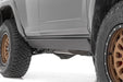 6†all-season, lightweight, durable aluminum running board. Dual-motor technology is reliable in extreme climates. Anti-slip surface provides a secure stepping area (textured coating) Integrated LED lights illuminate the board when deployed. Automatic ‘SAFE-STOP’ engages if blockage is detected. Interior bypass switch for manual override. Retracted running board protects rocker panel. 660 lb. weight capacity per side. Easy, no-drill installation. Tucks tight under Rocker Panel for a clean, in-line look. Note: Sold in pairs. <p><strong>Step up in style.</strong> Sidesteps have come a long way, and now we've taken them to the next level with Rough Country's Power Running Boards! These retractable E-Boards tuck tight for a clean look when not in use and automatically extend when the door is opened. With an anti-slip surface that provides a secure stepping area, getting in and out of your ride has never been easier. Our Power Running Boards also include LED lights that provide illumination when deployed and shut off when steps are closed, providing a sleek, aerodynamic look.</p> <p><strong> Premium Construction.</strong> The Rough Country E-Board Steps combine durability, strength, and style. These 6" all-season steps are made from lightweight yet durable aluminum and can support up to 660 lbs per side. Equipped with dual motor technology, these steps can handle anything Mother Nature throws their way. They feature an automatic 'SAFE-STOP' mechanism that engages if a blockage is detected and include an interior bypass switch for manual override. So whether you're heading out on a weekend errand or loading up for a camping trip, our electric steps offer reliable protection for all your adventures.</p> <p><strong>Installation.</strong> These easy-to-install steps are the perfect solution for getting in and out of your vehicle. No drilling is required for installation, and the steps tuck tight under the rocker panel when not in use. Don't struggle to get in and out of your vehicle anymore. Make life easier with Rough Country's Power Running Boards.</p> <p><strong>Warranty.</strong> Rough Country backs its products with a limited lifetime replacement warranty. Our products are protected from structural and workmanship damage after purchase. Our industry-leading warranty gives you peace of mind when using Rough Country products!</p>