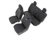 Easy installation. Made to factory specifications. 4-Layer construction w/ foam padding and protective polyester shell. Neoprene layer offers great breathability and water resistant. Includes full covers for front seats - plus headrest covers where applicable. Front covers help protect your most-used seats from wear. Rear covers help protect your back seats from children and animal stains. One year warranty. Note: Warranty information: CLICK HERE. Protect your GM's seats from water, mud, and anything you can throw at it with Rough Country's front and rear Neoprene Seat Covers. These easy-to-install covers fit snugly over your truck's seats to protect your interior from the elements while blending in perfectly.<br/><br/>These comfortable seat covers feature a 4-layer construction with thick foam padding for a comfortable feel and durable quality. The outer Neoprene protective layer wards off water and mildew while being soft to the touch and offering great breathability. Each cover is designed to be an exact fit on your vehicle, with accessibility for airbags, seat adjustment, and more!<br/><br/> No tools are required for this fast and simple upgrade, just slip each cover firmly over the seat and fasten with the built-in straps and you're ready to roll!<br><br>Pick up a set of front seat covers to save your most-used seats from additional wear, or a rear set to protect your back seat from stains caused by kids or animals. Or choose front and rear for full seat protection!